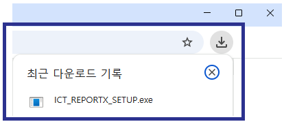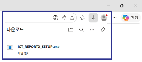 하단의 "플러그인 다운로드" 버튼을 눌러 "ICT_REPORTX_SETUP.exe"를 다운로드하여 설치 진행 바랍니다.